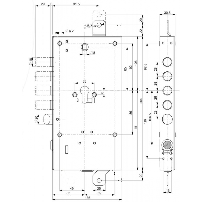 4 ригеля толщиной 18 мм имеют выход 35 мм плюс защелка;